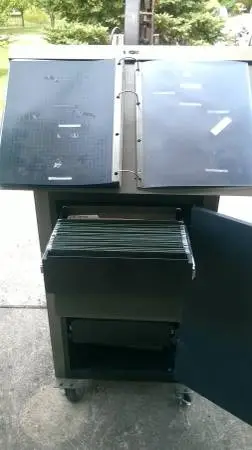 METAL PODIUM ON WHEELS AND HAS DRAWERS , VERY NICE LOT OF 2