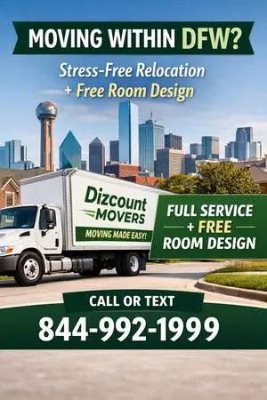 🚚 Professional Moving Services DFW: $59 Man/Hour & FREE Truck! Need reliable movers in Dallas, Fort Worth, Arlington, or anywhere in the DFW Metroplex? Our professional team is here to make your move easy and affordable. Our Unbeatable Offer: 💲 Only $59 per man, per hour 🚚 FREE Moving Truck Included with every service! ⏰ 2 hr. minimum hours required on most jobs. WHY CHOOSE US FOR YOUR MOVE? We are a full-service, local moving company dedicated to providing 5-star service without the 5-star prices. ✅ Professional & Experienced Crews: Our movers are background-checked, insured, trained professionals—no day labor. We handle your items with care. ✅ Full-Service Options: We offer loading, unloading, packing services, furniture assembly, and local transportation. Whether its a small apartment move or a large house move, we can help. ✅ Servicing the Entire DFW Area: We are local experts serving Dallas County, Tarrant County, Collin County, and all surrounding areas, including Plano, Irving, Garland, McKinney, Frisco, and Denton. ✅ Transparent Pricing: No hidden fees, no surprise charges. The price you see is the price you pay. SERVICES WE PROVIDE: 📦 Local Residential MovingApartments, Homes, Condos 🏢 Office & Commercial Moving 🛋️ Loading & Unloading ServicesIf you rent your own truck or storage unit Packing & Unpacking ServicesFull or Partial Furniture Delivery & Setup Ready to book your move? 📞 CALL/TEXT US TODAY FOR A FREE, NO-OBLIGATION QUOTE! 844-992-1999 Dizcountmovers.com is fully licensed and insured for your peace of mind. Check out our reviews online!