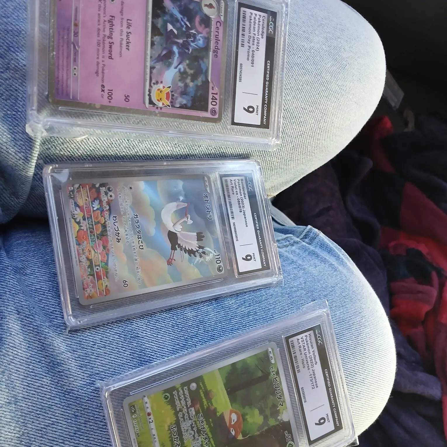 trying to sell my pokemon two sealed pokemon tins and 5 slabs only 3 in picture two zapdos Japanese 10 us 8