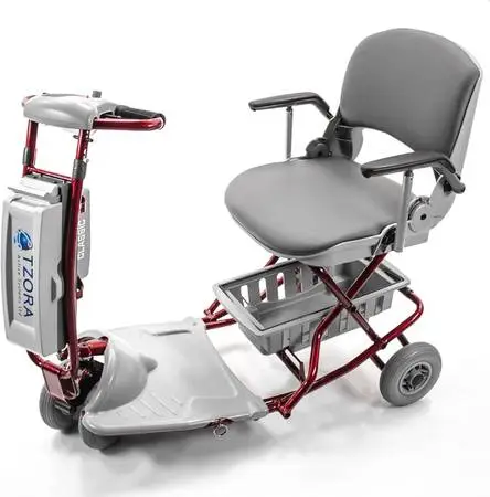 TZORA CLASSIC LEXIS LIGHT RED 4 LARGE WHEEL MOBILITY SCOOTER/2 LITHIUM BATTERIES 1 for an extraAND MANY ACCESSORIESbaskets, cover, etc. Like new, rarely used. Original owner. Separates into 2 for easy travel. Front columnwithout battery 19 lbs. Rear frame 28.5 lbs. Maximum user w 8250 lbs. Charging time 7-10 hours. Manual included. Highly rated. $1500. 847-676-2088 after 11 AM daily