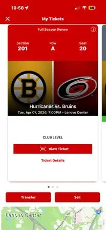 I have an aisle seat (A20) in Club Level 201 for the Carolina Hurricanes on the side the Canes shoot on twice against the Boston Bruins shoot on April 7 at Lenovo Center. This is a digital Ticketmaster ticket that can be texted or emailed to you. The seat is $250. Include your cell phone so we can make arrangements with a call. I can also meet up in person at Regal Cary Crossroads movie theater. If listed, it’s available.