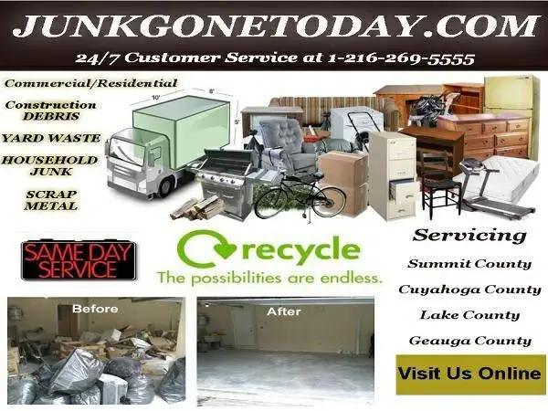 Junk removal 7 days a week! NO WAITING! Call me and my truck and trailer can be at your location in 1 hour. No waiting! Call to speak with a friendly person now! Ask for Pete 216-206-7080 Or text friendly! Text pics 4 a fast quote! Prices start at $70 Truckloads start at $150 Trailer load start at $250 Jumbo trailer $475 At Junk G 1 Today Cleveland junk removal service, nothing makes us happier than to be told by our Cleveland, Shaker H 8 s, Parma, Westlake, and Rocky River and Cleveland customers that we’re improving the quality of their lives, 1 professional Junk removal service at a time. Homeowners living in Ohio City, Tremont, Kamms Corner, Chagrin falls, Solon, and Bay Village, OH are spending their free time doing what they love rather than performing junk removal and or demolition services in their houses. Junk G 1 Today in Cleveland, Oh provides junk removal services to customers in Downtown Cleveland, Lakewood, Mayfield H 8 s, and Cleveland H 8 s come home from work and play with the kids or read the newspaper instead of loading a dumpster with items from the garage, attic or basement . Our local junk removal company also service customers all over Beachwood, Lyndhurst, Pepper pike, Brecksville, Broadview H 8 s, and 7 Hills and they are discovering that the quality of their lives is enhanced not only by a spacious decluttered home but by the support and professional experience and a special tailored treatment for each customers specific needs its a no brainer . Are you looking to do junk removal or junk hauling , trash clean up, or just waste removal in Cleveland, Oh area ? The Junk removal Cleveland Experts will remove your unwanted items with integrity. We guarantee your junk will be disposed of in the most responsible manner. We donate all usable items to charity, recycle all materials that are recyclable, and ensure as little ends up in a landfill as possible. Feel good about eradicating the junk from your life the conscientious way, by generating as little waste as possible. Don’t break your back or your wallet. We offer the best junk hauling prices around. Our professional team will walk through and quote your project with you upon arrival, to ensure there are no surprises or hidden fees. Our Junk Removal Cleveland Expert services go for just about any kind of old junk you could imagine. Whether it is a junk pickup, trash pickup, or furniture pick up of any size or shape, we are committed to bring you the highest quality personable junk removal Cleveland service at an affordable price. We are Cleveland’s best Furniture Removal Service: When it’s time to get rid of that old couch, table, desk, or chairs, just call Cleveland Junk Removal & Hauling in Cleveland. We remove old furniture from your home, office, store or garage and dispose of it, recycle it or donate for you. Cleveland Junk Disposal and Junk Furniture Removal is a same day furniture and junk removal company serving the homes and businesses of Cleveland, Ohio and Cuyahoga County. Call us at 216-269-5555 for free quote for junk unwanted furniture removal service. Serving the entire Cleveland area, we are considered by our customers to be 1 of the finest junk removal companies in the Greater Cleveland area. Calling The Junk Removal Cleveland Experts is the last part of any remodeling or new construction job and should not be overlooked. As you know, among contractors, labor is typically their highest cost. Don’t make a huge mistake in hiring your roofers, carpenters, or plumbers to do your junk removal in Cleveland for you? Not only will it cost you more, but they are not equipped to make your new place look as good as it should. Then there’s only 1 thing that you can do – hire a professional junk removal company in Cleveland that comes with a professional team for your junk removal in Cleveland needs. if it fits in our truck, it can be disposed of. We have the resources needed to handle any type of junk removal, even handle light demolition. We offer junk haul away services for multiple types of cleaning all the way from estate cleanup to hoarding cleanup. Anything you need removed: old furniture, appliances, yard debris, even scrap metal. You name it, we remove it. Junk Removal and Trash Pick-up Service company in Cleveland, Ohio Junk G 1 Today offers Junk Removal, House Clean outs, Trash Hauling, Light Demolition, Renovation Debris Removal, Furniture Removal and Garage Clean outs More…. Call 216-269-5555 Junk Removal Cleveland We are the Junk Removal Cleveland Experts of Cleveland, Ohio. Junk G 1 Today offers complete junk removal and cleanup services for homes and businesses in the greater Cleveland, Ohio area. Below are some of the specialized services we offer: Benefits of using our junk removal Cleveland service: Affordable pricing Fast, flexible & convenient scheduling with same or next day service available Reliable, trus 2 rthy and committed to providing courteous and professional services to all our clients. Environmentally responsible – we recycle your unwanted items diverting as much material away from local Cleveland, Ohio landfills. Items donated support local families and other charitable organizations . Our professional junk removal cleveland crew removes and loads almost anything from anywhere in your home, garage or place of business. You relax while we do all the work! Residential Junk Removal in Cleveland Oh. Junk Removal Cleveland comes to your home and removes all your junk at a low price GUARANTEED. Once you decide what is junk, Junk G 1 Today starts the Cleveland Junk Removal process immediately. We’ll even clean up after we’re d 1 Commercial junk removal and trash hauling in Cleveland OH. Junk Removal Cleveland can come to your business and pick-up your company’s garbage and junk. No job is too big or too small for Cleveland Junk Removal. Because Junk G 1 Today recycles nearly all of the junk we haul, it will be dealt with in a clean sustainable way. Cleveland Ware