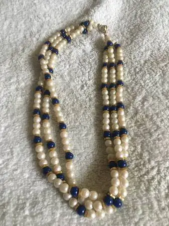 Blue/gold/pearl/….3/strand necklace