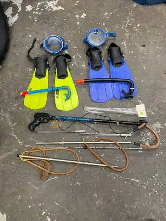 Scuba Pro Spear Gun and Spear with tips and spears masks fins everything call 907-244-8107 no text jo email