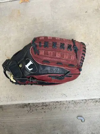 I am selling a LOUISVILLE SLUGGER KHBG 913.5 BASEBALL GLOVE. This Louisville Slugger glove is in excellent condition with minimal use. It is black and burgundy/wine in color. I am selling it for $40.00 Feel free to call me with questions at 408-482-0373. keywords: LOUISVILLE SLUGGER KHBG 9 BASEBALL GLOVE