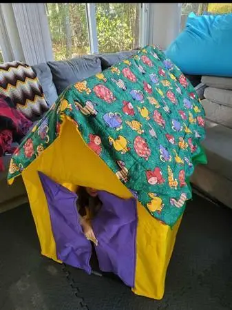Bazoongi Kids Cottage Playhouse $20. Creative play for hours. Fits 2 children easily. All poles included. Easy assembly/take down. Velcro door/windows for opening and closing. If interested, please contact Elizabeth at 619-779-6677 or reply to this posting. Pickup in Lowell Cash/Venmo preferred