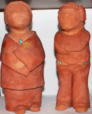 American Indian Signed Sculptures with Turquoises by Billy K, Dated 1976, Sizes 12 x 5, 11 x 4, excellent conditions, Terracotta . CONTACT EDWARD 323-899-2877 $250 - $400 FOR BOTH OBO