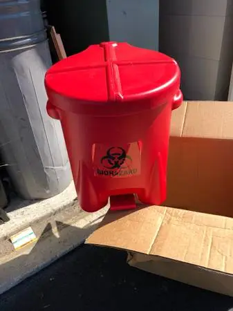 Delling a Biohazardous waste can. Made by the Eagle company. Polyethylene Safety can with foot lever. Size is 6 gallon capacity. Model number is 943BIO. Iten is brand new in box. Retail $105.00. Asking $40.00. Call or text. Number 989.........397------------7503==========. SORRY due to all the spam emails NO emails answered without phone number.