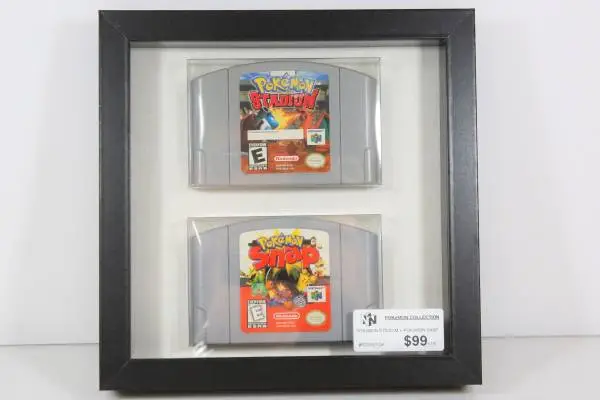I am selling this *FRAMED SET* - POKEMON STADIUM + POKEMON SMAP for NINTENDO 64. This set of cartridges are in EXCELLENT condition, and work great. They are placed inside a protective plastic case, and mounted on a frame. Easily removable to play. Please feel free to call or text with questions 818-351-9222 I do not respond to emails.