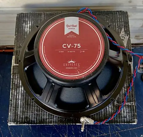 Eminence CV-75 12 75-Watt 8 Ohm..like new, less than 1hour of use! Fully wired with an in-line, side-mount 1/4 input jack so the amp can also be used as a 1x12 extension cabinet for a different amp without disconnecting anything! (wired locally by Winfield Amps..a really smart wiring mod!!!) $110 cash/no trades...price drop to $95 (because its basically new and because of the wiring harness*) *if you dont want the wiring harness, I can remove it and you take $15 off the price :D)