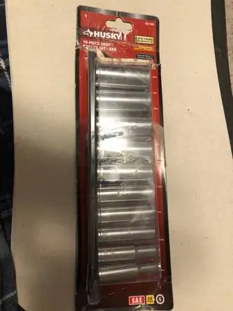 Selling 10 piece socket set. Made by Husky. Is 3/8 drive. Deep well style. Are SAE. New in package package shows wear. Asking $25.00 for the set. Call or text. Number 989=-=--397=-=-7503. SORRY due to all the spam emails NO email answered without phone number.