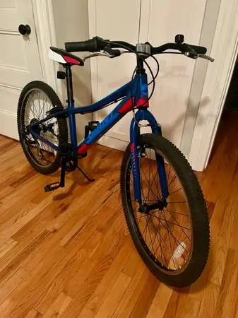 Giant XTC Jr 24 Lite kids mountain bike in excellent condition. Lightweight aluminum frame 24” wheels with excellent condition Giant 24x1.95” tires 7-speed Shimano Revoshift grip shifter Shimano Tourney derailleur Color: blue, red and white Kickstand Bell Bike has been fully tuned-up and adjusted. Good for kids approximately 7-10 years old or 4’2” to 5’0” in height. MSRP: $440 (current is $500+) Bike is currently located in Auburndale, MA. Can meet periodically in Wellfleet, MA or in between.