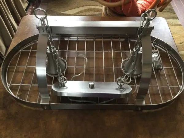 New looking pot rack with 2 down lights 7 hooks, chains, please text, it works better for me. 405-778-1316.