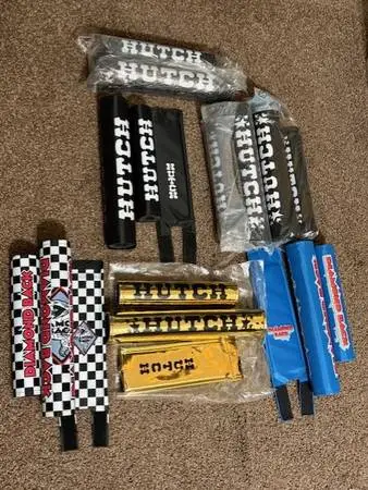 HUTCH, DIAMOND BACK BMX FREESTYLE BIKE PAD SETS $90 1980s BMX FREESTYLE BICYCLE PADS! CAN ALSO GET OTHERS.... AUBURN DG BMX CHAMPION RACING PRODUCTS COOK BROS RACING MONGOOSE PROFILE COMPETITION RACING PRODUCTS BADD AND COMPANY KUWAHARA BOSS-USA ELF POWERLITE ZAP PAD KASTAN U.S.A BOSS RACING TEAM VDC BLUE MAX WIDOWMAKER CHALLENGER HOLMES DIRTBIKE REDLINE CONTACT & PICK-UP TODAY! PLEASE SEE ALL PICTURES! : ) MULTIPLE SETS AND COLORS ARE AVAILABLE! JUST CALL ME AND LET ME KNOW WHAT YOU NEED! I CAN SHIP ALSO ANYWHERE BY SENDING YOU AN INVOICE VIA PAYPAL!!! YOU CAN PAY ANY METHOD YOU LIKE. A PAYPAL ACCOUNT IS NOT NEEDED!!! $90 PER SET!