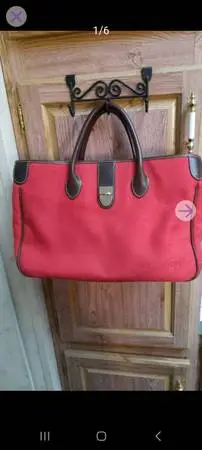 Lg red purse with matching glass case. Does not have shoulder strap. 14 wide, 7 deep, 10 tall with 5 handle drop. Look at the pictures to see all the compartments. Call or text the number in the reply area to set up a time to come check it out. I will not respond to scamers wanting to send a code.