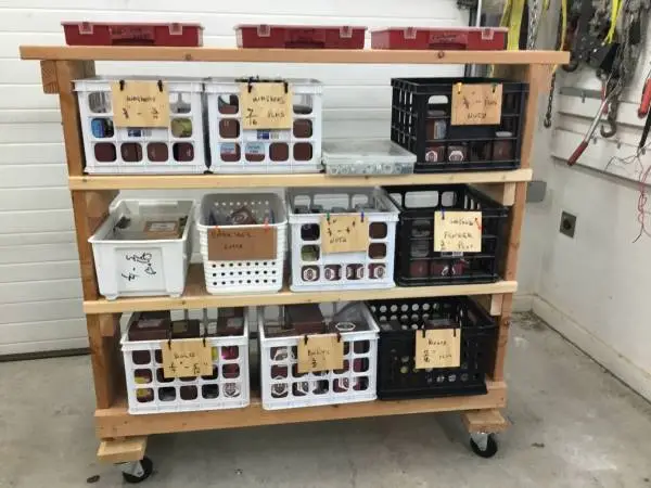 Huge Assortment Of Nuts And Bolts +Rolling Shelf Unit