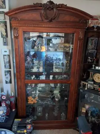 Selling hutch display cabinet.All wood not sure of type. But very heavy will need truck and couple people to move. Not particle board. Can not be taking apart. 4 glass shelf with top lights but needs bailaste to work i put in stick on lights remote controlled. It is a out 7 feet tall and is 40 inches width . In great shape asking $175.00 O.B.O If interested call 802-876-7843 or get wholed me here.....Bob