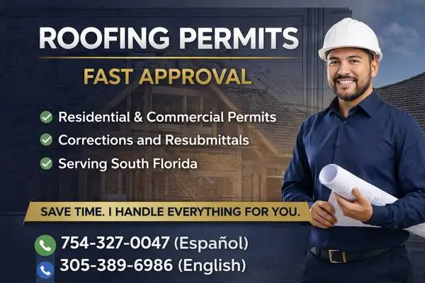 🚧 ROOFING PERMITS – FAST APPROVAL 🚧 Stop wasting time dealing with the city — I handle everything for you. ✔ Roofing permitsresidential & commercial ✔ Corrections & resubmittals ✔ Miami-Dade, Broward, Palm Beach ✔ Fast turnaround & reliable service I know how to deal with city reviewers and get permits approved faster. 📲 Español: 754-327-0047 📲 English: 305-389-6986 Serious inquiries only.