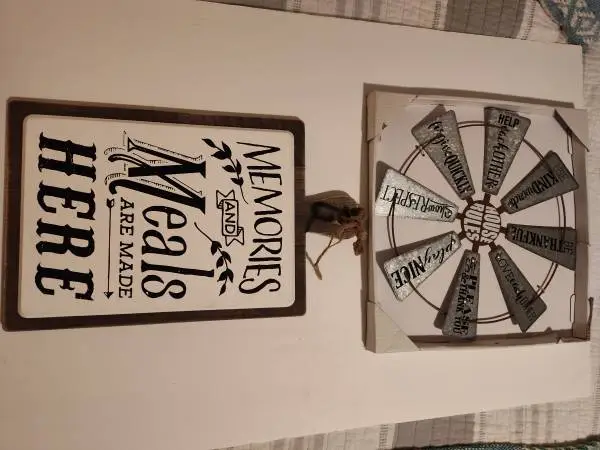 2 Brand new Home wall decor items. $ 10.00 for both. Makes a great Gift!! Memories here pc.: 15 H X 91/4 W House Rules pc: 11 in circular. SEE PICS! Cash only! No emails please! If interested please text or call the number listed.321-258-3147. SEE OTHER ADS BY THIS USER TO VIEW ADDITIONAL ITEMS FOR SALE! THANK YOU FOR LOOKING