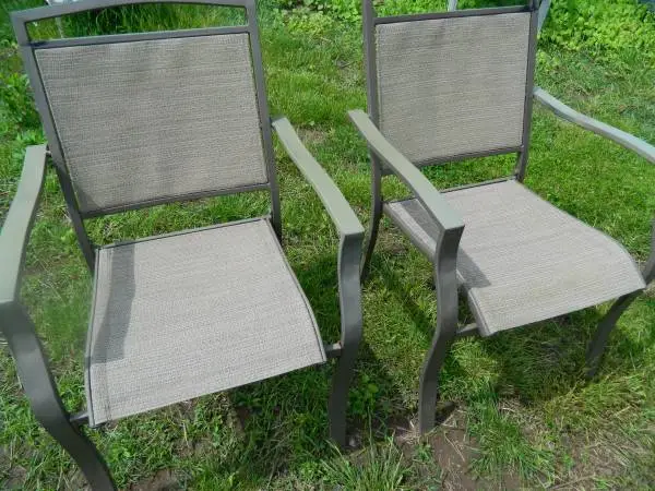 two patio chairs , tan