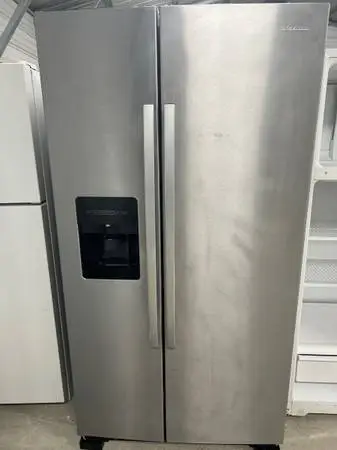 Amana Stainless Side by Side Fridge Works great Clean Ice Water Filter 36 Inches wide 681/2 Inches Tall Selling for $695 Delivery $95 352-434-2204