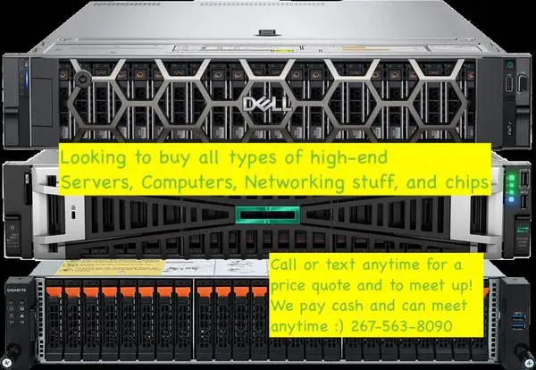 I’m local to the Philly, Bala Cynwyd, and Main Line area and looking to buy high-end IT equipment from offices, tech departments, and resellers. If your company has upgraded or has extra hardware sitting around, I’ll pay cash or Zelle for a smooth, no-hassle deal. Buying gear like: Servers & Workstations Dell PowerEdge R760 / R740xd HP ProLiant DL380 Gen10 / Gen11 HP ProLiant DL580 G9 Server HP ProLiant DL380 Gen10 40 Core HP ProLiant DL360 G10 Server Dell PowerEdge R940, 24-bay SFF Dell Poweredge R6525 H755N Dell Poweredge R750 8SFF NVMe NWOB Dell PowerEdge T550 Server Dell PowerEdge R740xd Server Dell EMC R940 Server Quad 20-Core Gold 6248 80Cores Dell PowerEdge R650 8-Bay Dell PowerEdge R740 Server 2x Xeon Gold Dell PowerEdge R740XD Server Dell PowerEdge R730 Server Dell PowerEdge C6400 Server Dell PowerEdge T640 18LFF Server 2 x Xeon Gold Dell PowerEdge R360 Dell Poweredge T350 Lenovo ThinkSystem SR650 V3 Cisco UCS C-Series Supermicro 2U/4U Servers Apple Mac Pro 2019, M2 Ultra 2023 Mac Studio M1 and M2 Ultra Lenovo ThinkSystem SR650 / SR630 Supermicro 2U / 4U racks CPUs Intel Xeon Platinum 8490H / 8280 / 6258R / Gold 6248 AMD EPYC 9654 / 7763 / 7742 / Milan / Genoa series AMD Threadripper Pro 3995WX / 5975WX Intel Core i9-13900K / 14900K NVIDIA RTX 4090 / 4080 Super / 4070 Ti Super NVIDIA RTX A6000 / A5000 / A4000 (workstation line) NVIDIA RTX 6000 Ada Generation NVIDIA A100 / H100 (AI-specific, very high end) AMD Radeon Pro W7900 / W6800 AMD RX 7900 XTX Intel Xeon Platinum 8490H / 8280 / Gold 6248 AMD EPYC 9654 / 7763 / 7742 AMD Threadripper PRO 3995WX Intel i9 and Ryzen 9 workstation chips GPUs NVIDIA RTX 6000 Ada / A100 / H100 RTX 4090 / 4080 / A6000 AMD Radeon Pro W6800 / W7900 Networking & Infrastructure Cisco Catalyst 9500 / 9600 / Nexus 9300 Arista 7050X3 and 7060X4 Juniper QFX5200 / QFX5700 Ubiquiti UniFi Dream Machine Pro / Enterprise Switches Fortinet Firewalls SonicWall Appliances NetApp, Synology, QNAP NAS units RAID arrays, SANs, eGPU enclosures If it’s valuable, I’ll probably buy it. Text or call (# in photo) any time for a quote. Happy to give a fast, friendly price and set up a quick local meet.