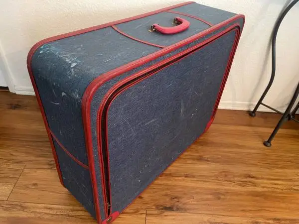 Luggage Suitcase red & blue jeans colors props for media movie decor