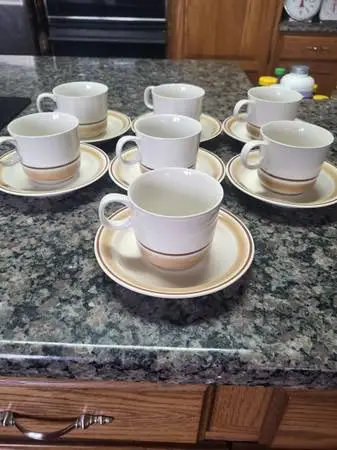 Lot of 7 hearthst 1 water colors hand decorated made in Japan tea cups with saucers. I purchased but never used and I have had stored away. From a smoke and pet free home. Pick up bartlettpolice station. Cash and carry call or text 630-965-2056. No chips. Excellent condition