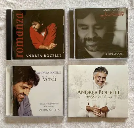 Selling 4 CDs by Andrea Bocelli: - Romanza - Sentimento - Verdi - My Christmas Everything is in great condition - view pictures to judge for yourself. $15 cash only Can be picked up in LakewoodSolterranear Alameda Parkway and C-470 or in Loveland near east side of Boyd Lake. Call 303-840-8874 no textor send e-mail.