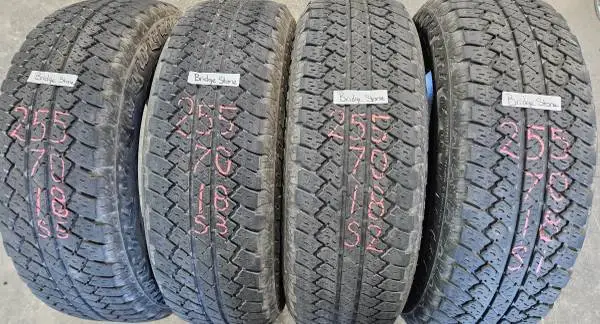 I am selling a nice used set of 2557018 Bridgest 1 Dueler AT tires. They are in good condition with 80 tread remaining. If you are interested, please give me a call at 913-424-3503.