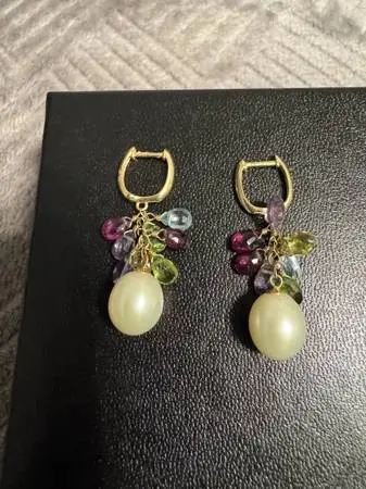 14 k earrings with topaz, amethyst, tanzanite and pearl $220. If interested please text 907-720-2171