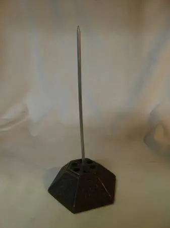 This is a vintage metal paper spindle. You stab the papers down the wirelike receipts. Very cool addition to your desk or countertop! It measures 61/2 tall. The base is 6 sided and is 23/4 across. The base is embossed with designs. $5. It is in Penryn. Call 916-663-2246 to see it/buy it. I have more items on Craigslist. Place 2246 in the search field to view all of my listings. This item is available to be shipped by USPS. Buyer to pay actual costs of Paypal fees and mailing pl...